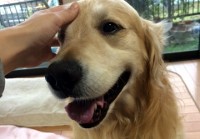 症例:バディくん。目をつぶって頑張ってくれました^^大きな身体で少し怖がりさんなところが可愛い〜♪